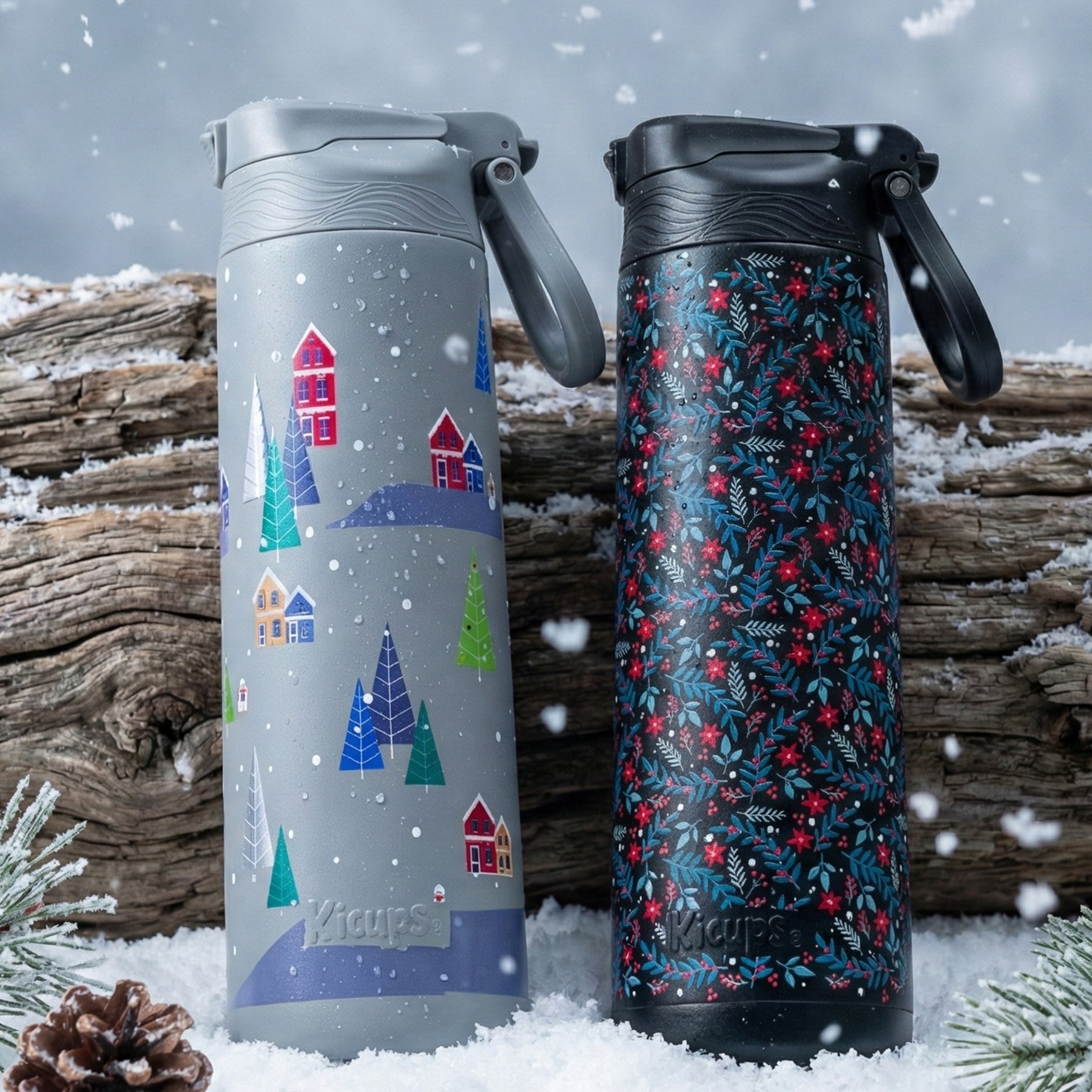 Stainless Steel Insulated Dual Lid Bottle in our limited edition holiday print